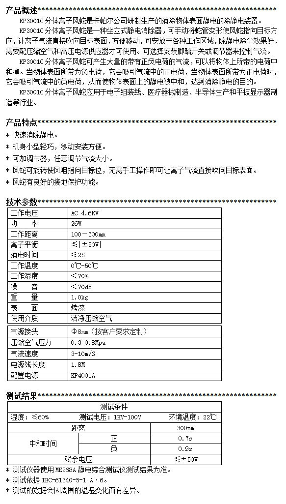 KP3001C第三代分體離子風蛇
