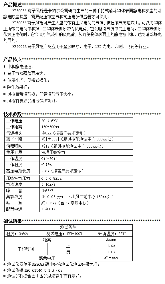 KP3003A第三代膠體圓頭離子風(fēng)槍